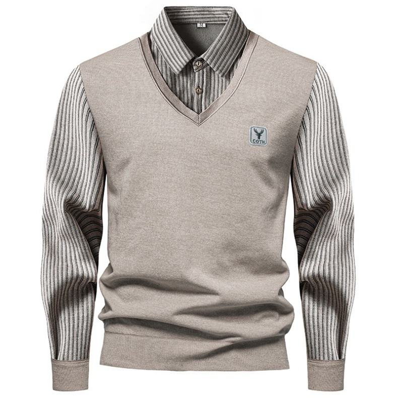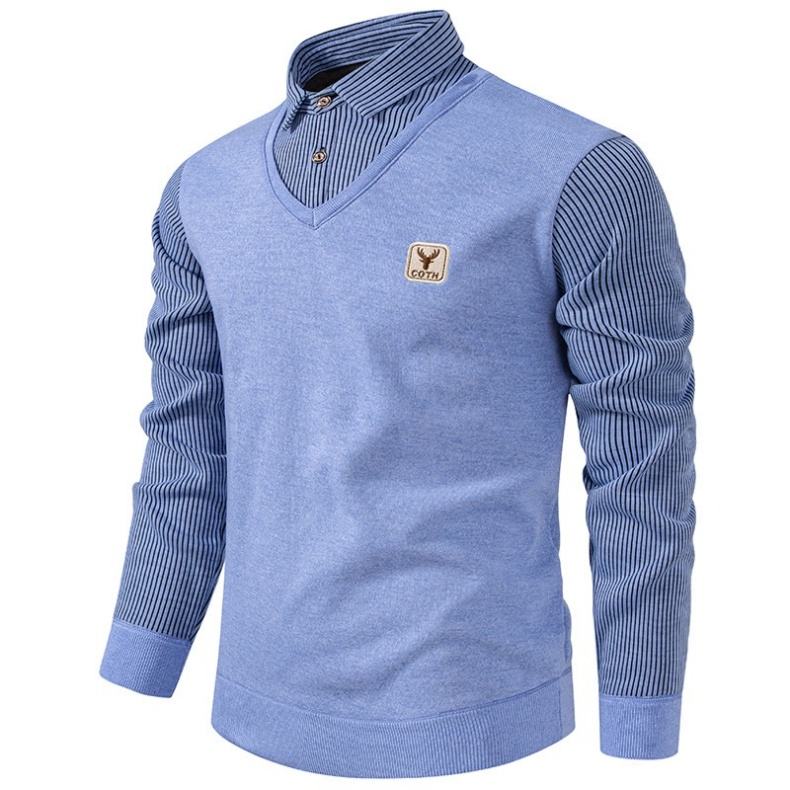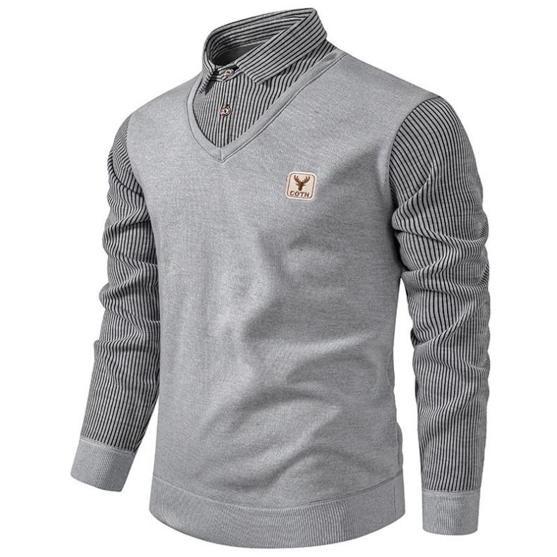 Logo personalizzato Oem abiti foderati in pile a righe a maniche lunghe con scollo a V in maglia maglia Casual Pullover Polo lavorato a maglia Top