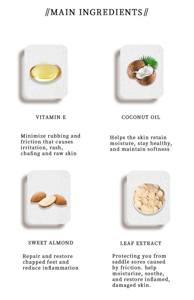 Funzione:Minimizzare lo sfregamento, trattenere l'umidità, riparare la pelle danneggiata