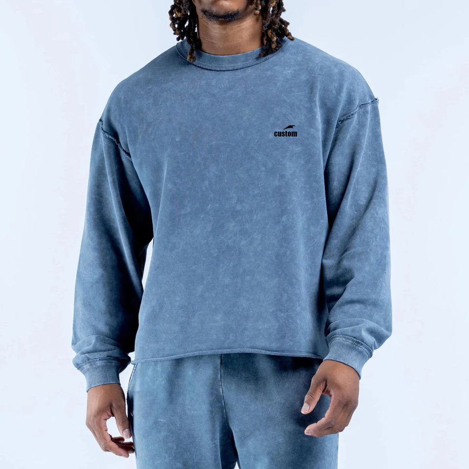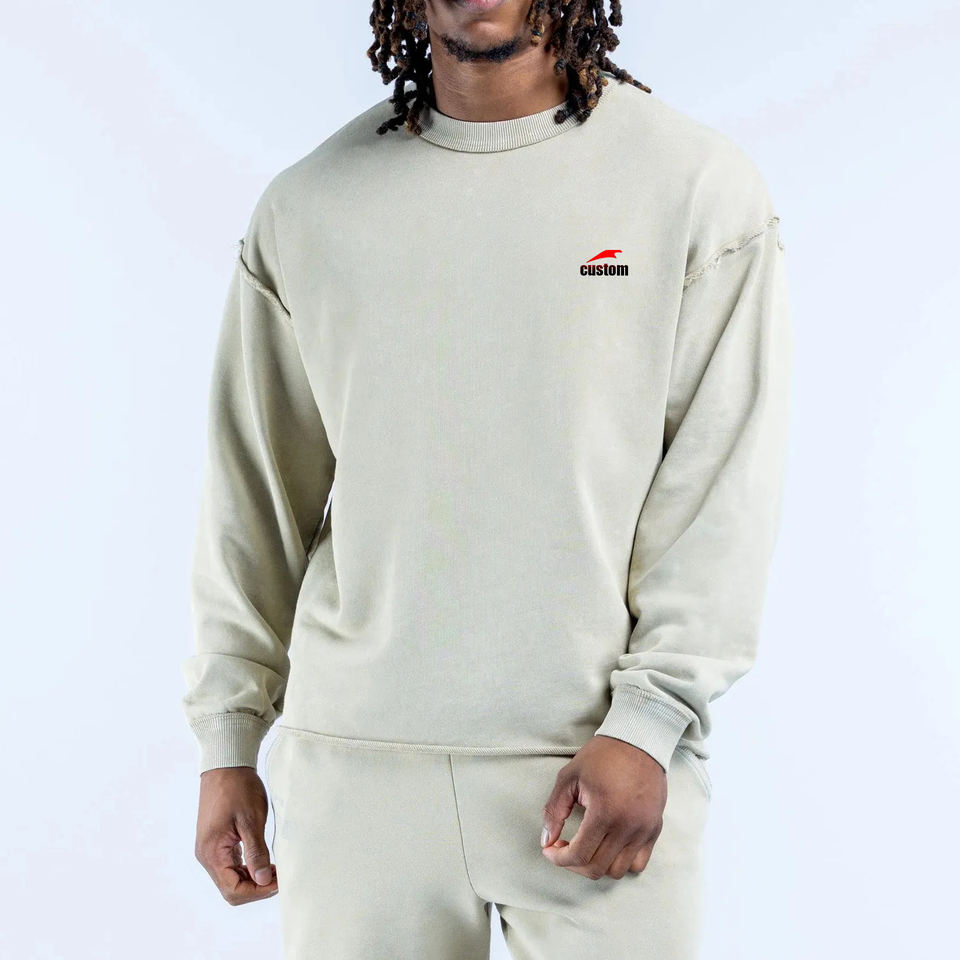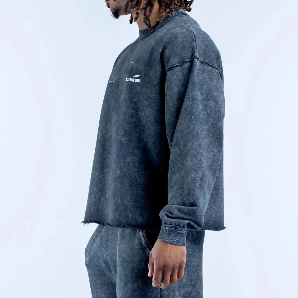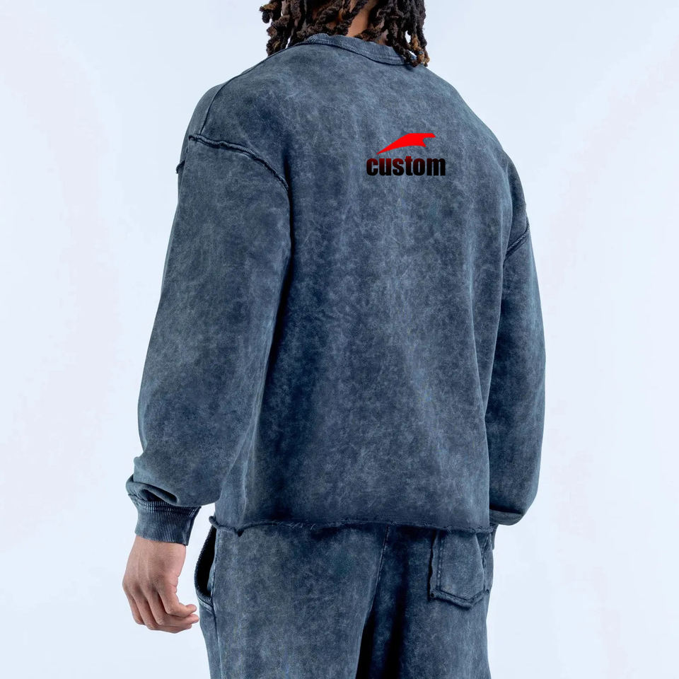 Felpa con Cappuccio Oversize Personalizzata con Logo, Bordi Grezzi e Effetto Vissuto, in Cotone Organico Pesante con Spalle Cadenti per Uomo