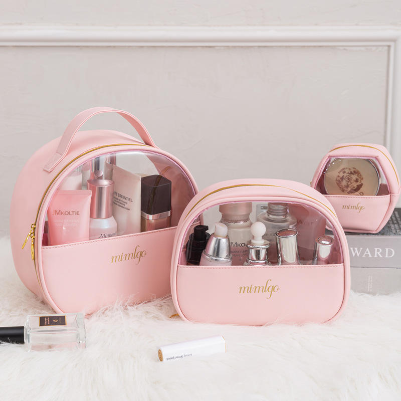 Borse Cosmetiche Trasparenti in PVC Rosa con Logo Personalizzato, Pochette da Viaggio per Toilette in PU con Cerniera