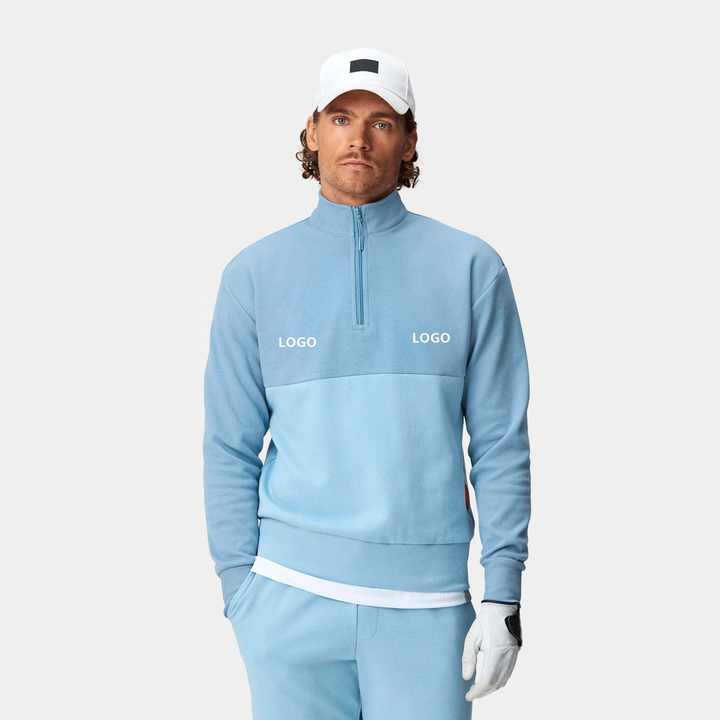 Felpe Pullover da Uomo Sportive da Golf a Maniche Lunghe con Collo a Zip a 1/4 in Tinta Unita e Stampa Logo Personalizzata
