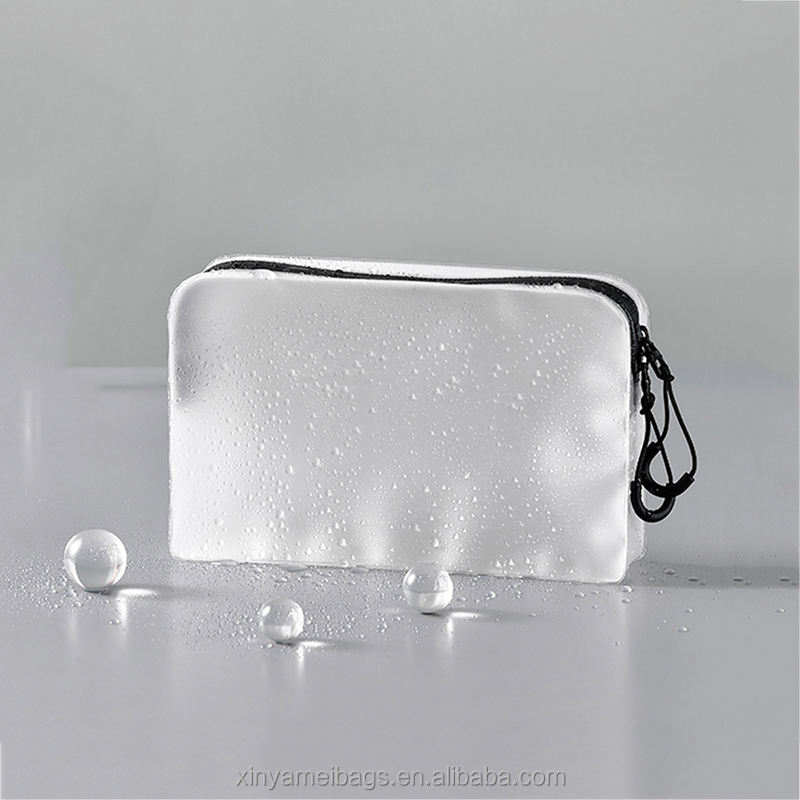 1pc di biodegradabile libera glassata tpu fatto da viaggio impermeabile sacchetto di trucco private label con doppia zip cursori interno sacchetto di plastica, 100pcs per scatola esportante
