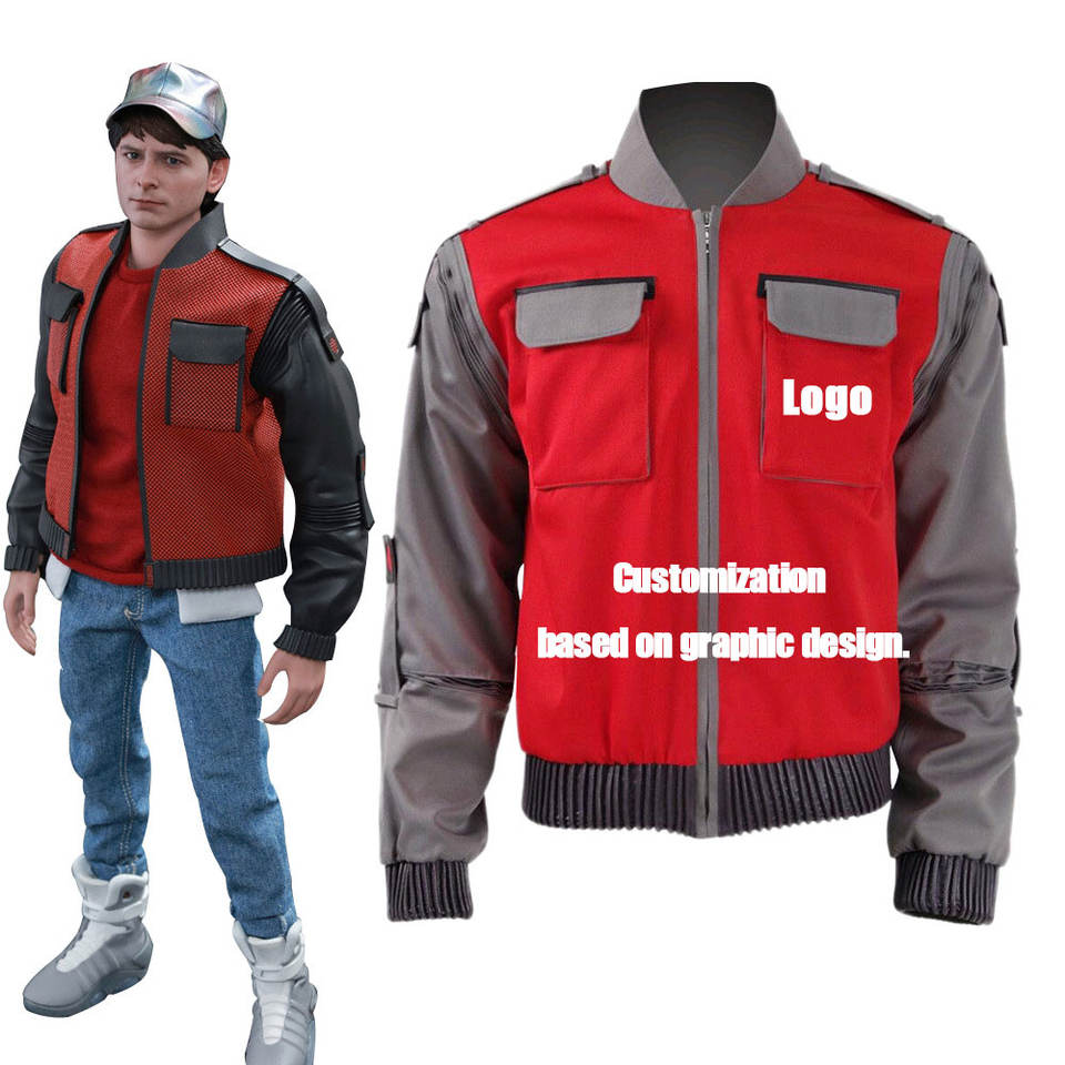 Custom Logo Puff Print Foil Orint Halloween Back to the Future Martin Cosplay Costume Martin Character Cosplay Anime Jackets