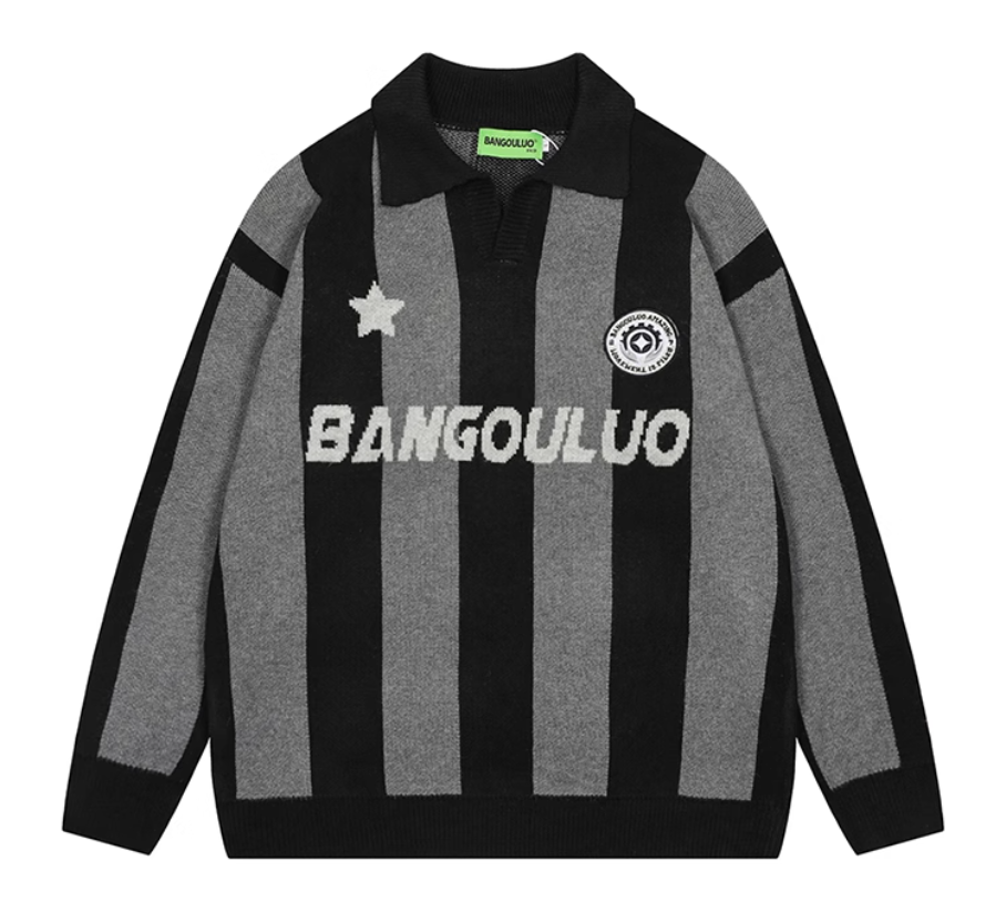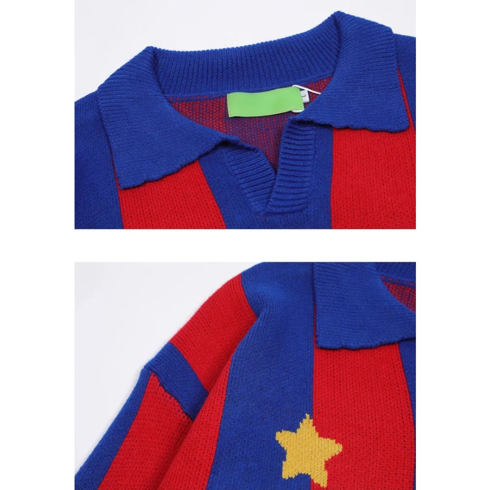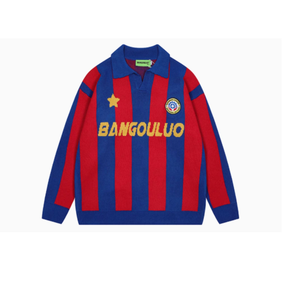 Maglione Personalizzato con Logo, Colletto a Polo a Righe, Ricamo, Jacquard, Maglia da Calcio Lavorata a Maglia per l'Inverno