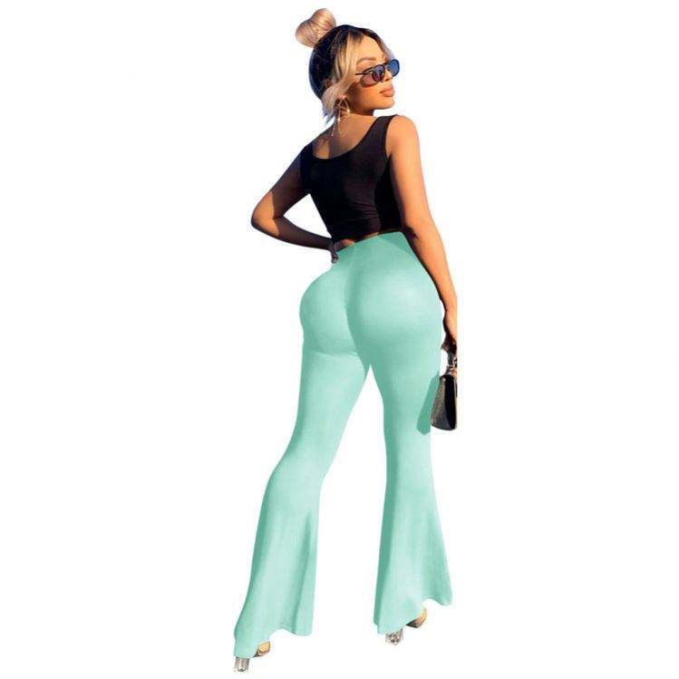 Logo personalizzato in maglia a costine due pezzi abbigliamento donna estate manica corta pantaloni svasati 2 pezzi set completo da donna