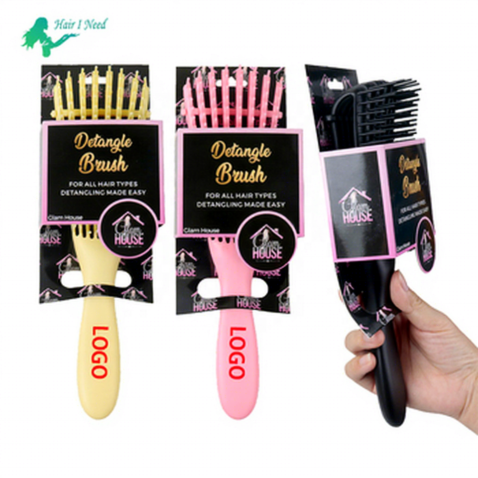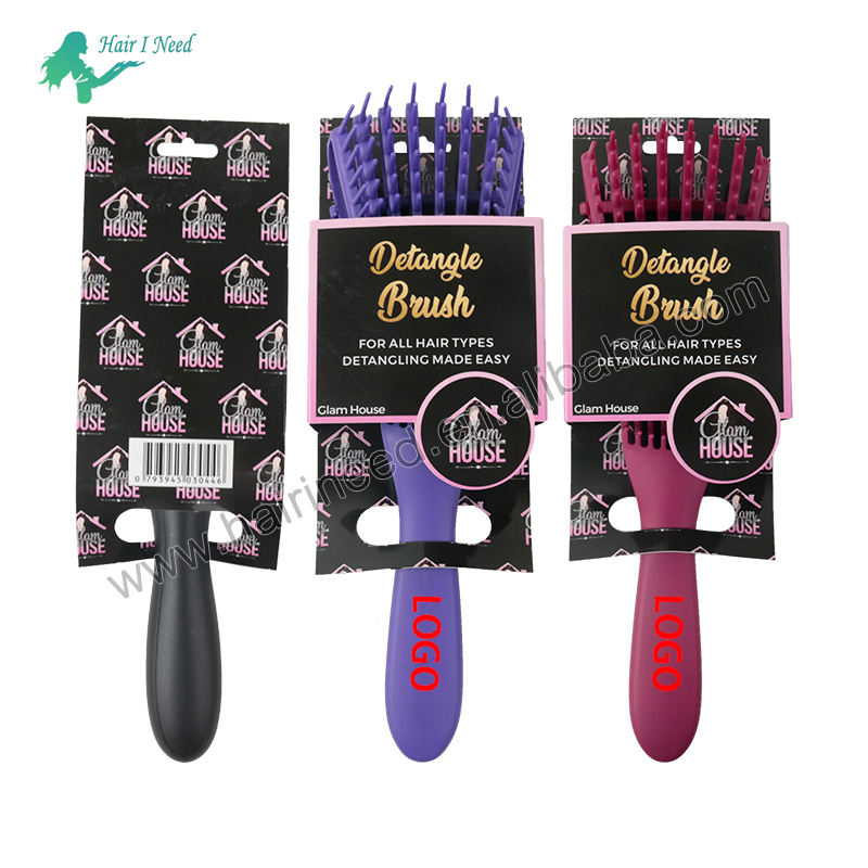 Custom Logo Salon Barber Detangling Wet Dry Hair Brush Massage Detangle Hair Comb Brush With Custom Package for Women