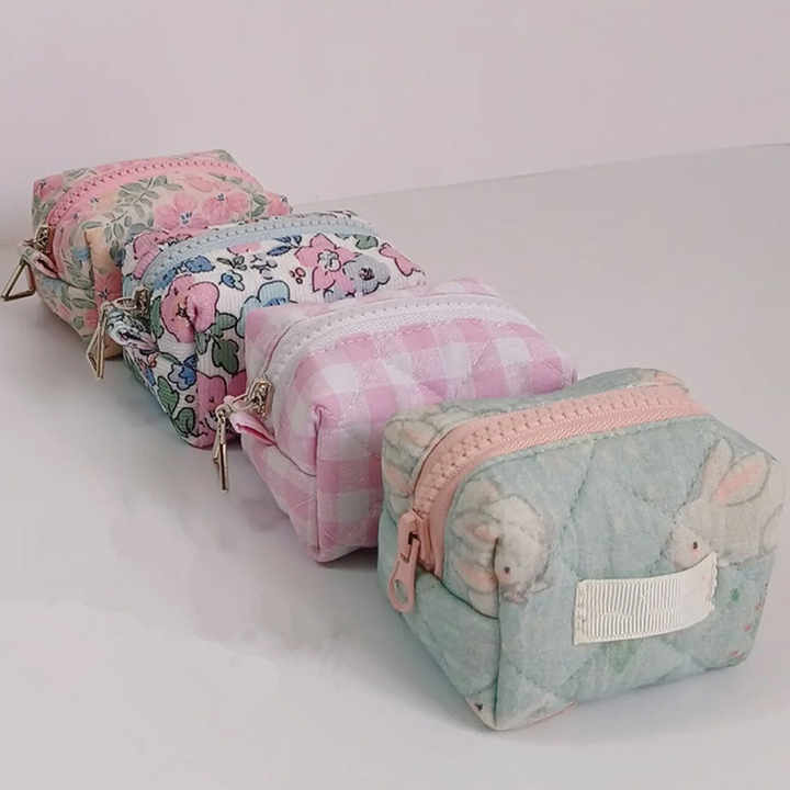 Logo personalizzato dimensione Mini cerniera stampato cotone trapuntato cambio a moneta lucidalabbra assorbenti porta chiavi porta porta chiavi