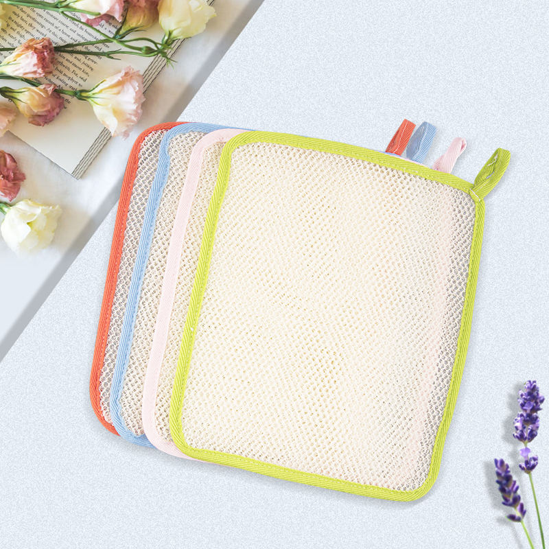 Asciugamano esfoliante con Logo personalizzato in rete di Nylon panno per sfregamento Scrubber per bagno doccia sapone con bolle di schiuma panno per lavare