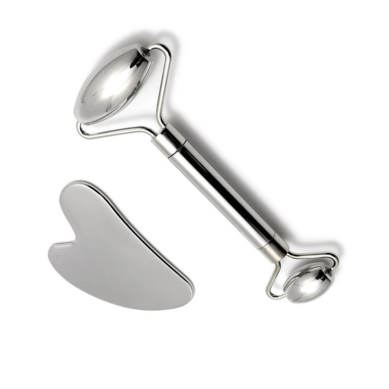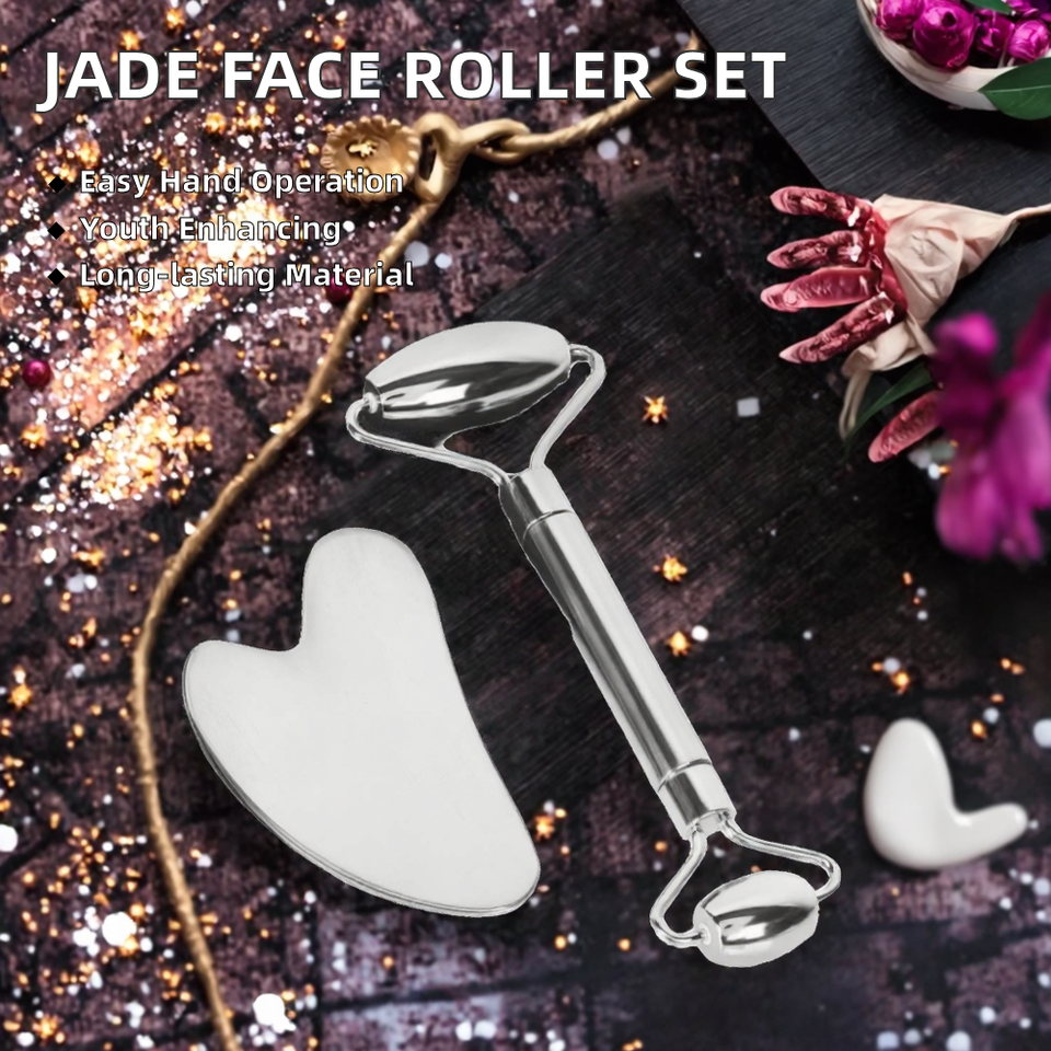 Strumento di massaggio viso dimagrante con Logo personalizzato silenzioso Anti-invecchiamento rullo di pietra di giada e Set di Gua Sha massaggiatore per il viso