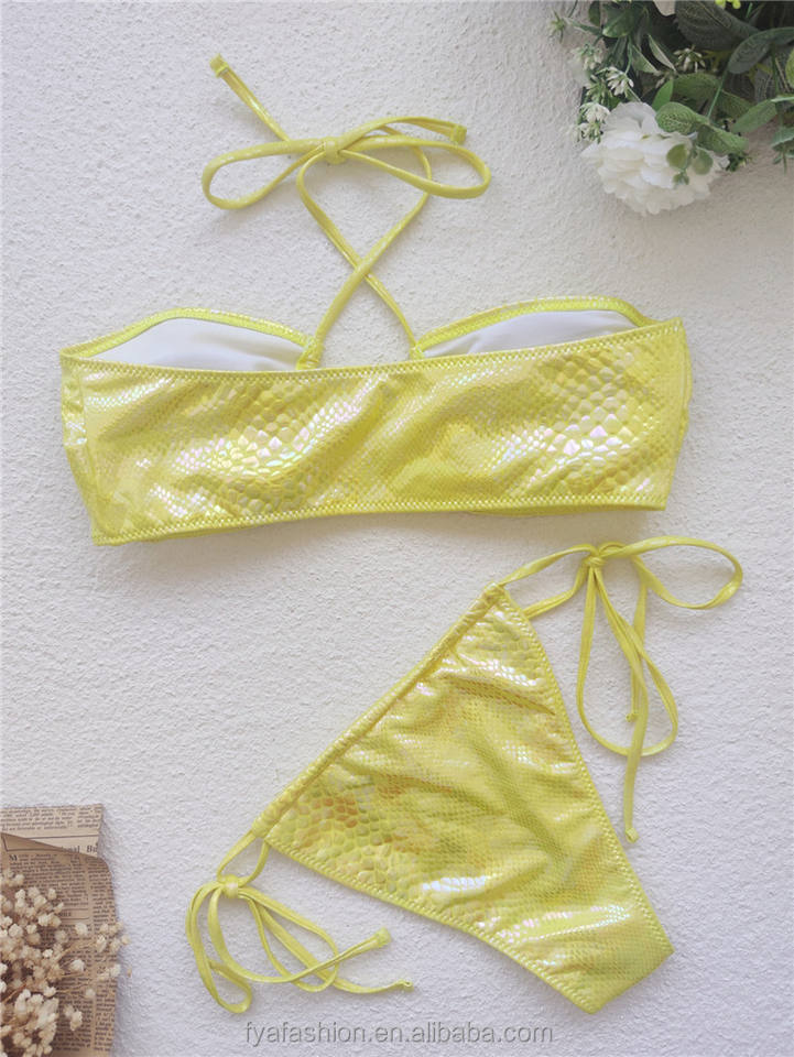 Bikini da spiaggia da donna perizoma con cinturino incrociato lucido in tinta unita con Logo personalizzato