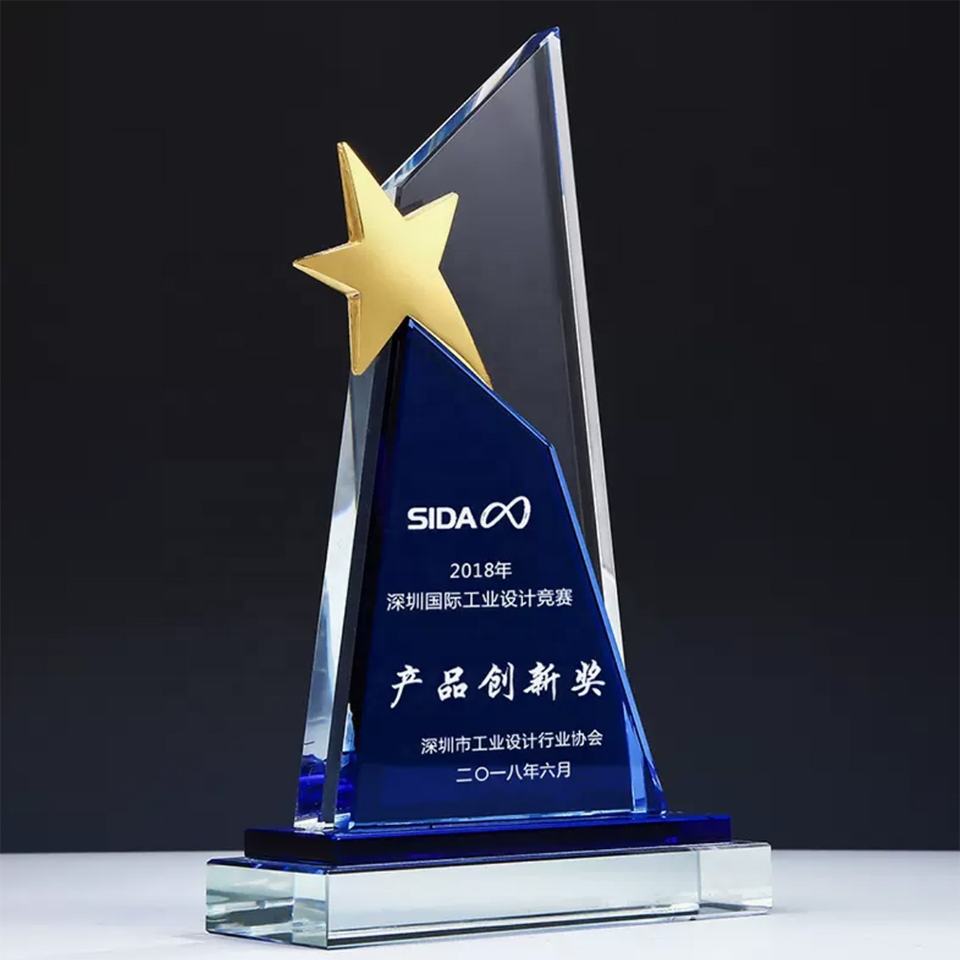 Trofei in Cristallo K9 Personalizzati con Logo Souvenir Premio Artistico Personalizzato in Metallo Bronzo Stella Occidentale per Aziende