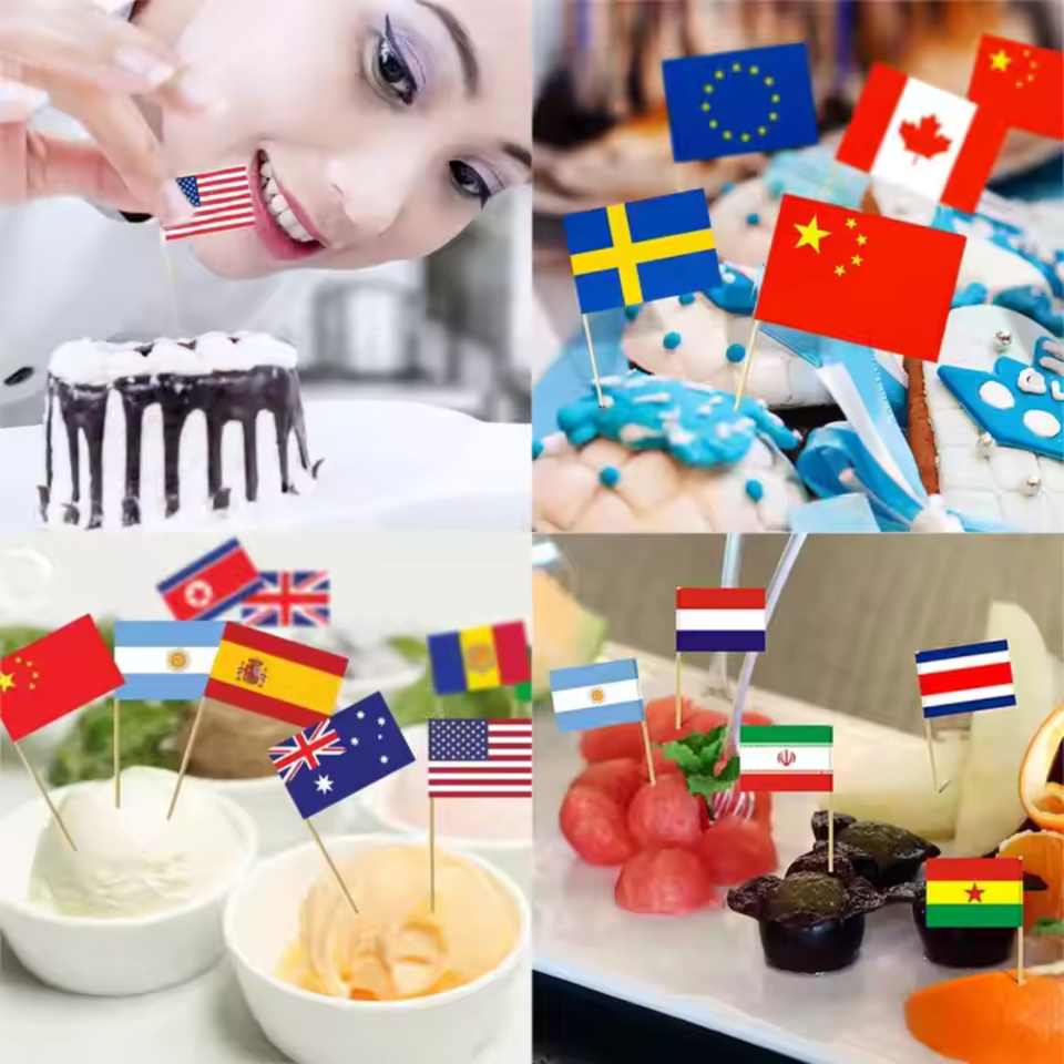 Adesivo Logo personalizzato festa di compleanno stuzzicadenti ombrello bandiera torta cibo Cocktail Sandwich decorazione Hamburger bandiera stuzzicadenti bandiera