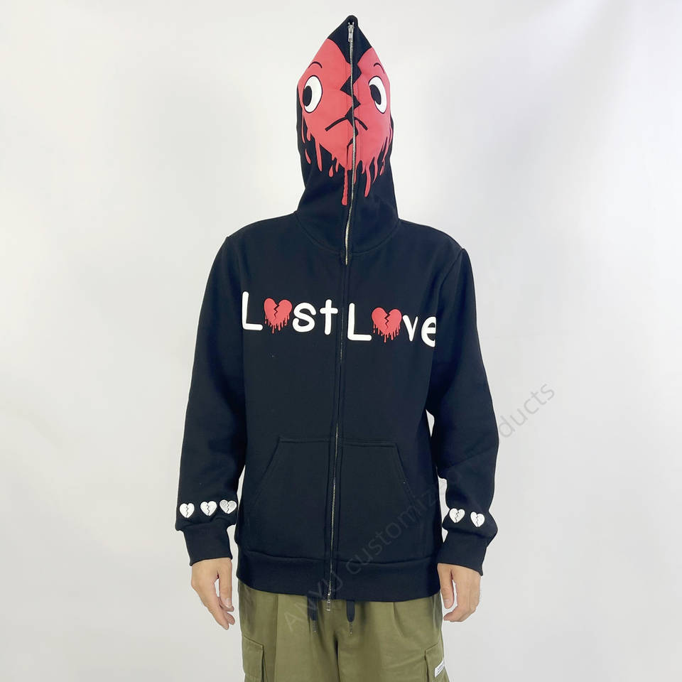 Logo personalizzato Streetwear taglie forti felpe con cappuccio da uomo spessa in poliestere e scheletro ricamato con Zip felpa da uomo