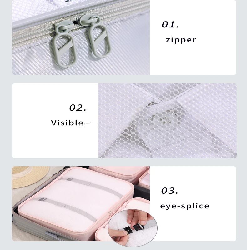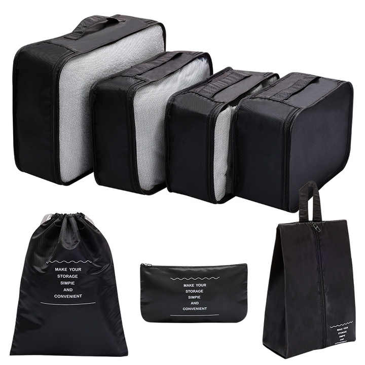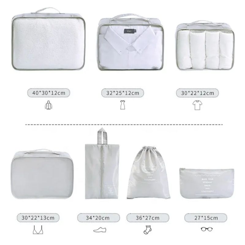 Set di 7 Organizzatori per Valigie con Logo Personalizzato, Cubi di Compressione per Imballaggio con Borse Portaoggetti da Viaggio in Poliestere