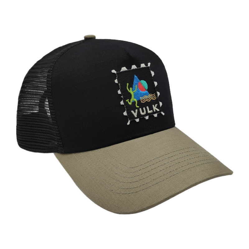 Cappello da camionista con Logo personalizzato produttore di due tonalità cappello da camionista con toppe a telaio 5 pannelli odiano per l'uomo