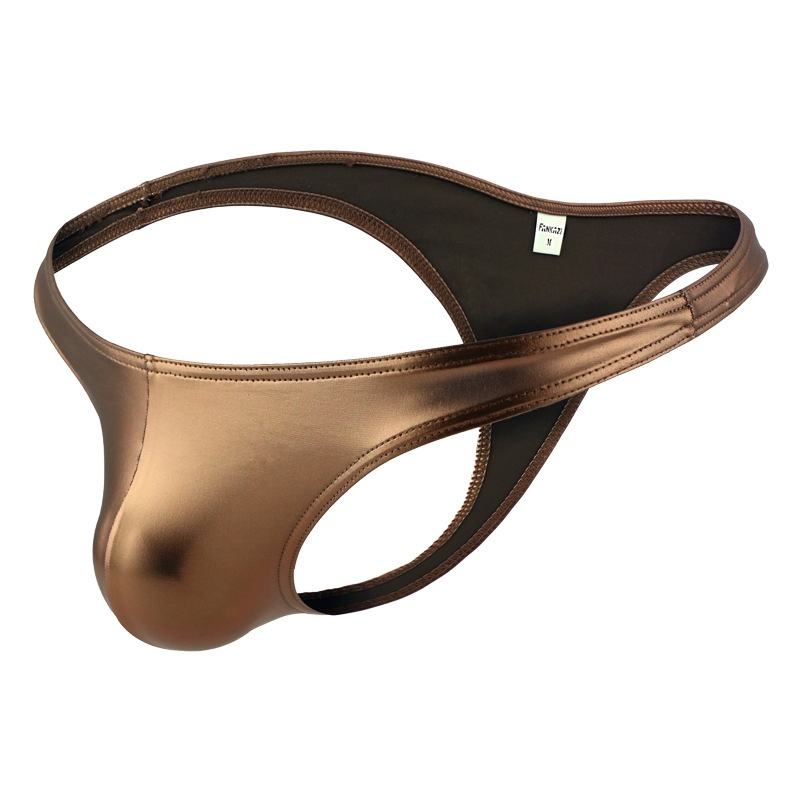 Logo personalizzato U-convesso confortevole stringa da uomo slip perizoma a vita bassa in finta pelle bronzata Nylon slip slip da uomo