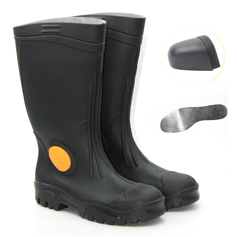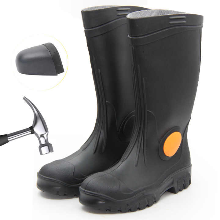 Custom Logo Waterproof PVC Boots Knee-High Rubber Anti-Smash Steel Toe Safety Rain Boots for Men Available in White Black Red