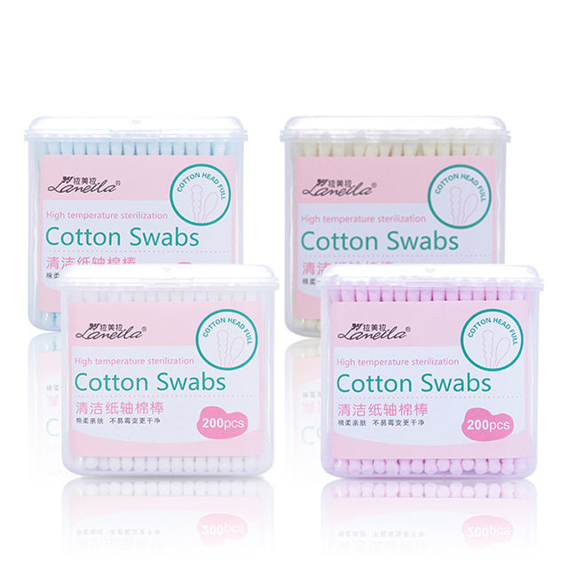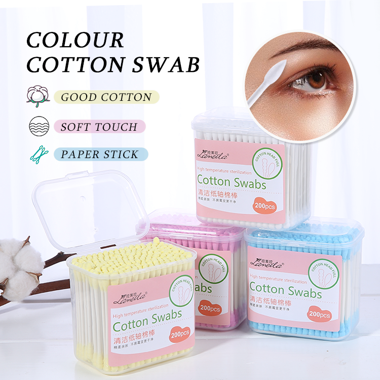Commercio all'ingrosso di cotone boccioli di 200pcs a spirale e punte rotonde bastone di carta di cotone orecchio gemme tampone