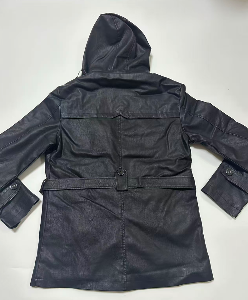 Giacca da Moto Invernale da Uomo Personalizzabile con Logo - Trench in Pelle PU Monocolore con Cappuccio (Capospalla Caldo e Antivento)