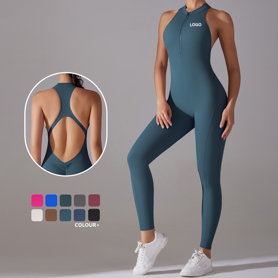 Logo personalizzato da donna di alta qualità abbigliamento da allenamento di un pezzo per donne a compressione con cerniera frontale ad asciugatura rapida per Yoga