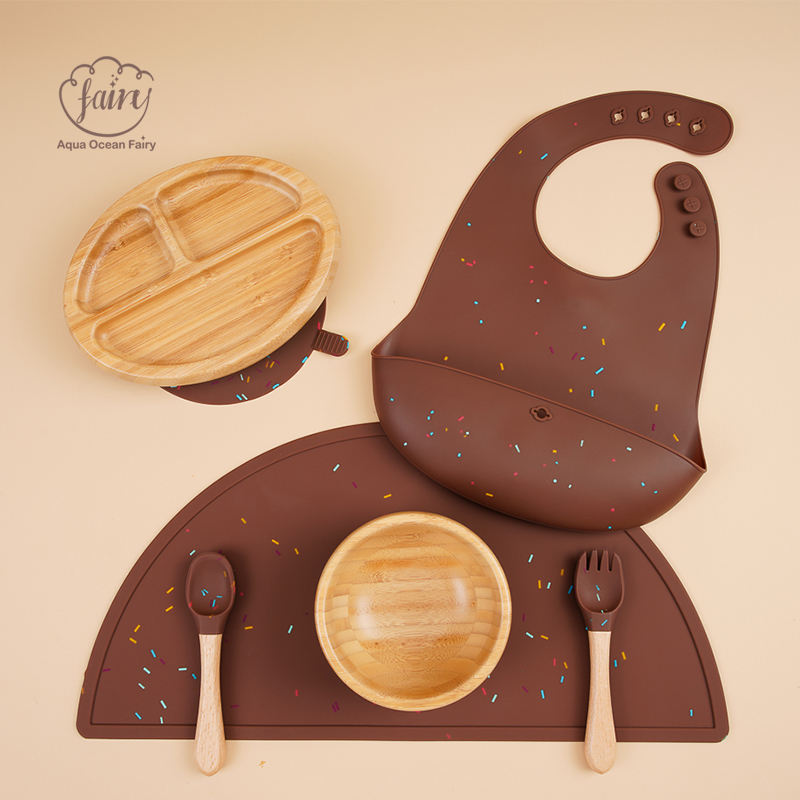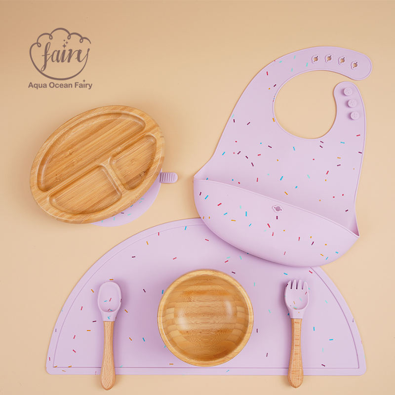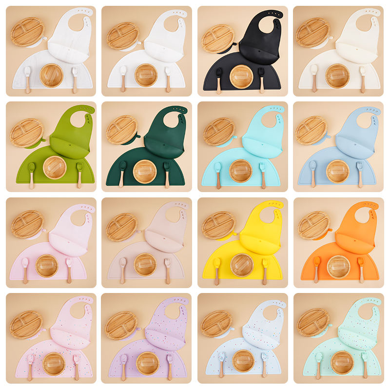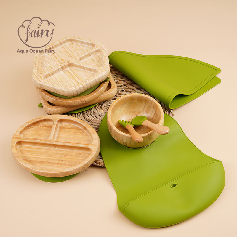 Logo personalizzato prodotti in legno impermeabile per bambini piatto di bambù in Silicone di alimentazione del bambino Set