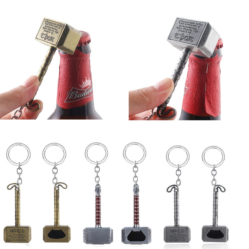 Custom Logo Zinc Alloy Marvel Avengers Thor's Hammer Stainless Steel Bottle Opener Keychain for Fans
