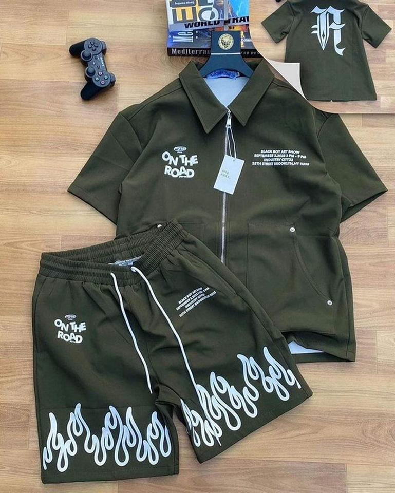Tuta da Jogging con Logo personalizzato con Zip e pantaloncini Cargo da uomo