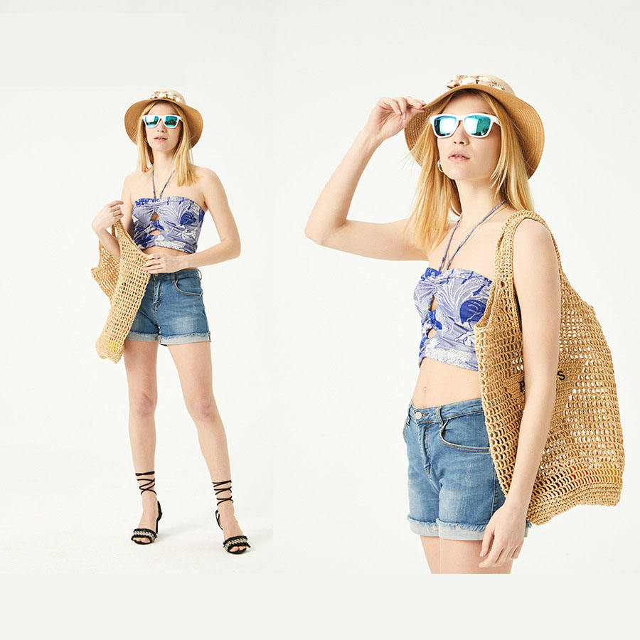 Custom Logo for Women Fashion Hollow Beach Soft Eco-Friendly Lightweight Large Capacity Dual Summer Hand-Woven Straw Tote Bag