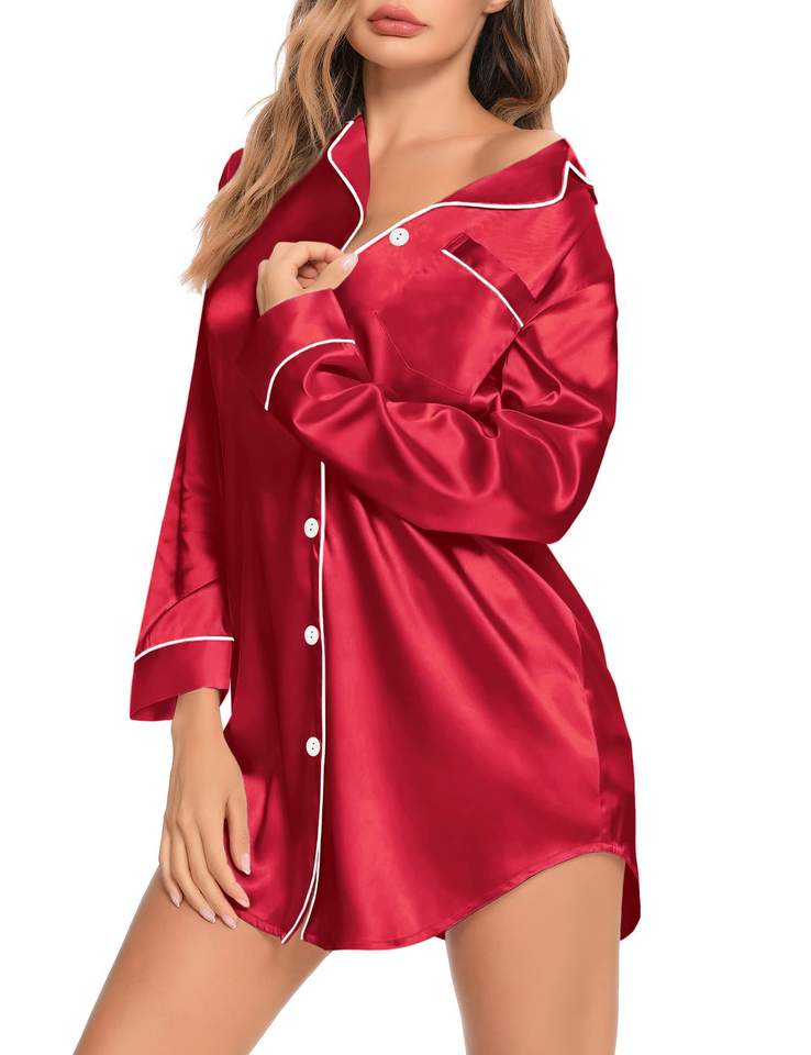 Custom Long Sleeve Silk Satin Bamboo Cotton Sleepwear Nightshirt Button Down Modal Nightgown Pajamas Shirt For Women