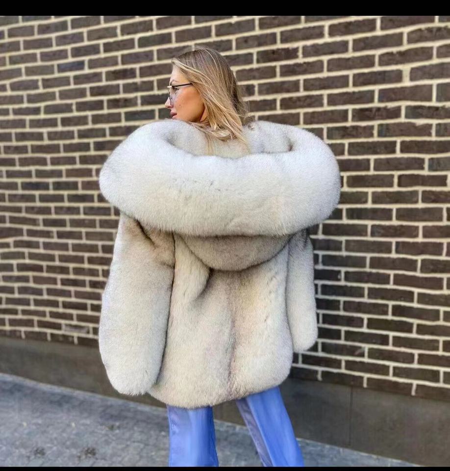 Custom Long Sleeves Fashion Women Fluffy Fur Jacket Winter Real Fox Fur Coat for Ladies