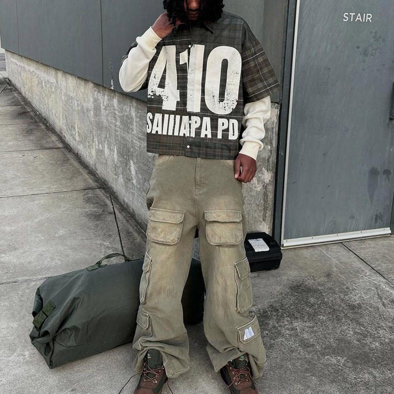 Custom Long-sleeved Shirt Streetwear Double Layer Long Sleeve Shirts for Men Printed Paid Full Sleeve Shirt