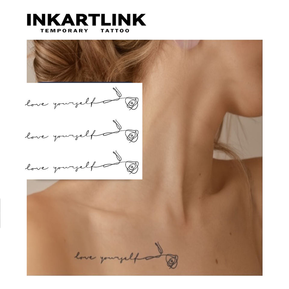 Custom Love Yourself Rose Herbal Tattoo Sticker Waterproof Long Lasting 15 Days Semi-permanent Body Art for Arm Women Men