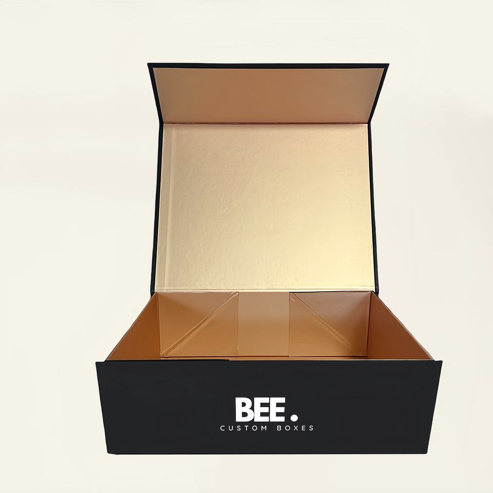 Scatola regalo personalizzata di lusso in cartone nero confezione pieghevole scatola di carta magnetica con chiusura a patta magnetica