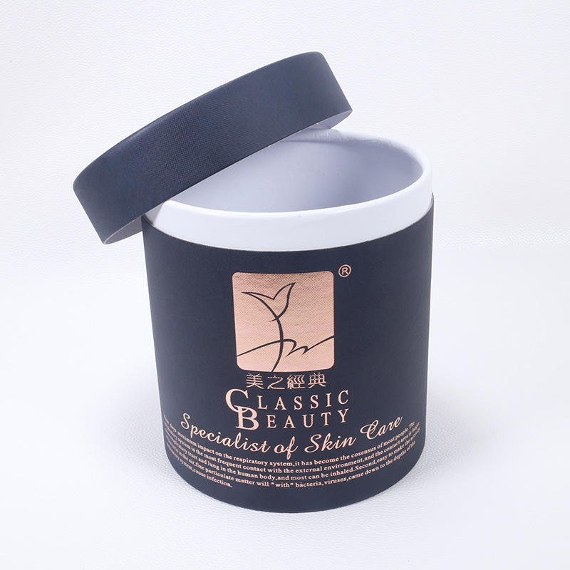 Confezione Personalizzata di Lusso in Tubo di Carta Nera, Scatola Cilindrica in Cartone con Stampa in Lamina per Cosmetici, Cura della Pelle, Oli Essenziali