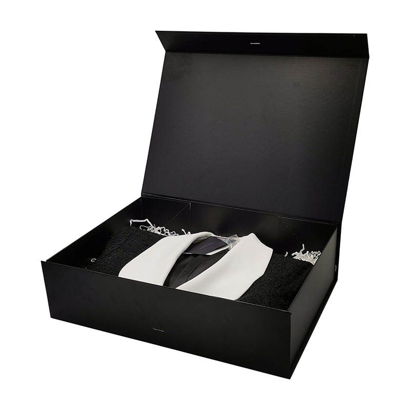 Di lusso su misura scatola di imballaggio di cartone di carta di abbigliamento abbigliamento abbigliamento regalo nero magnetico per il vestito