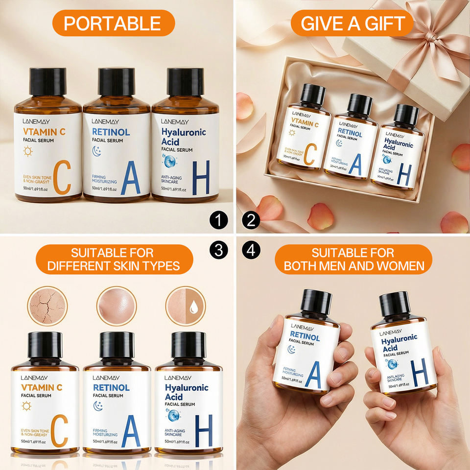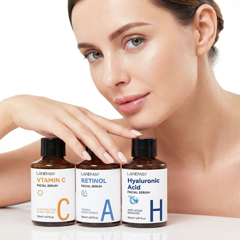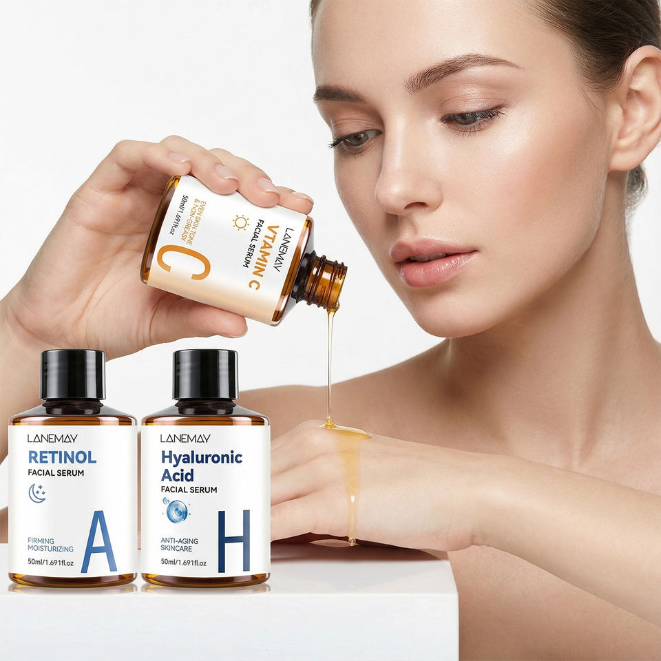 Set Personalizzato di Lusso per la Cura del Viso Giorno e Notte Sbiancante Illuminante Anti-rughe Anti-età con Acido Ialuronico Vitamina C Retinolo Siero Viso