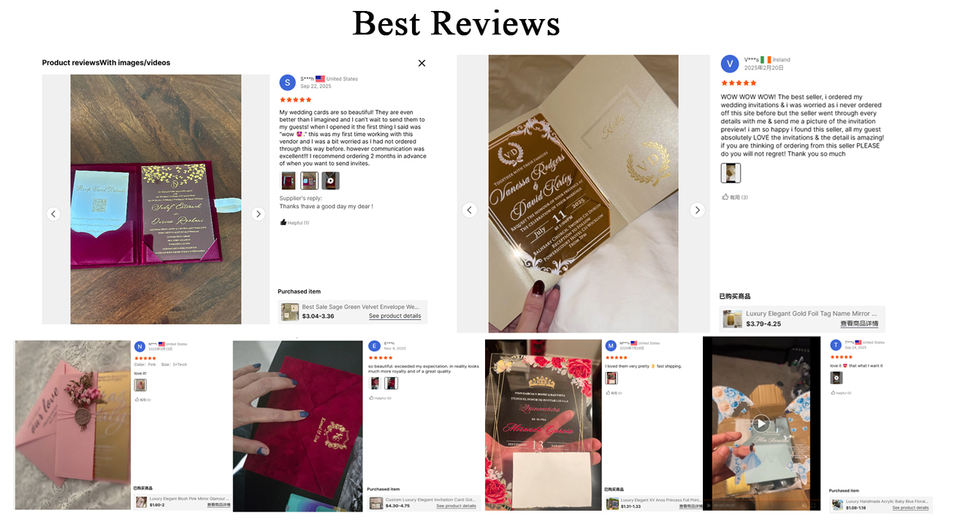 Include:1-2mm thickness acrylic card+envelope+Wax Seal+rsvp card