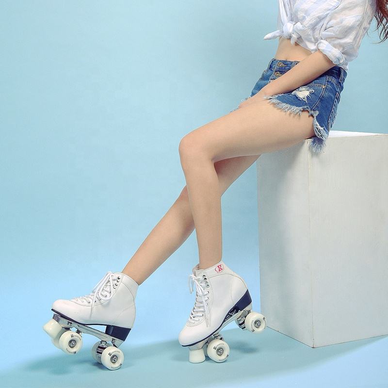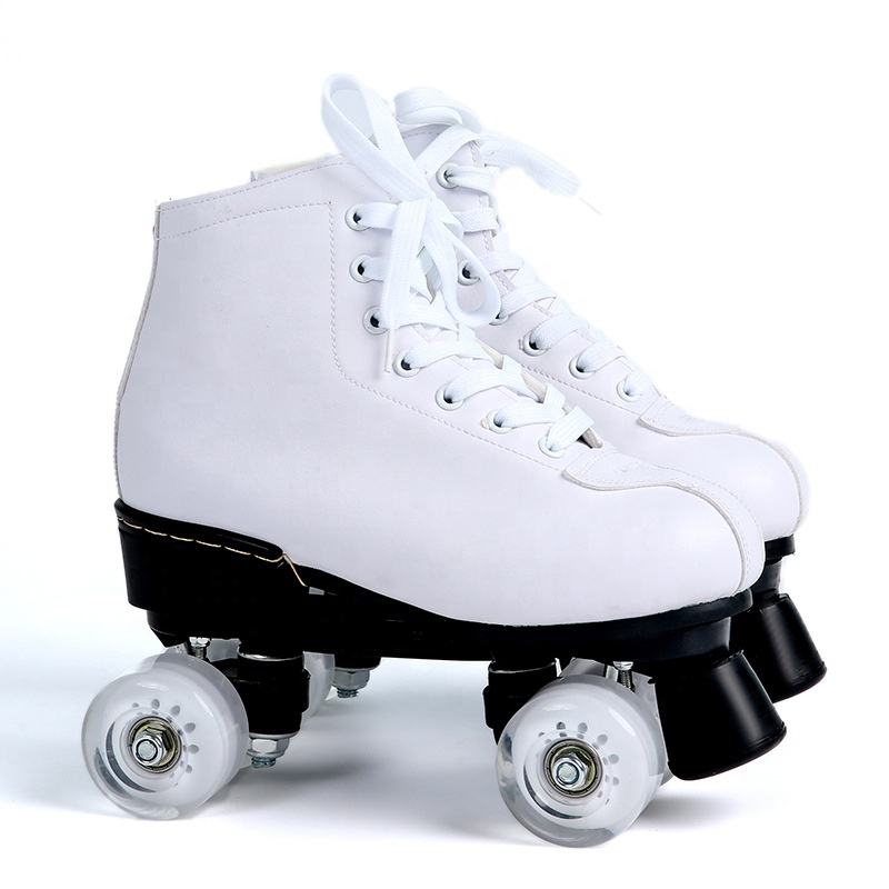 Pattini a Rotelle Quad Personalizzati di Lusso in Vera Pelle con Quattro Ruote, Scarpe da Pattinaggio con Ruote LED Lampeggianti in PU per Pista