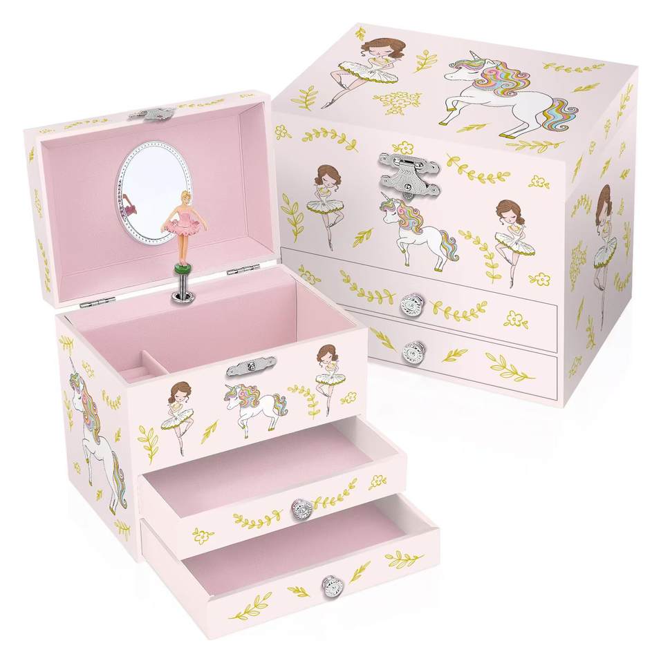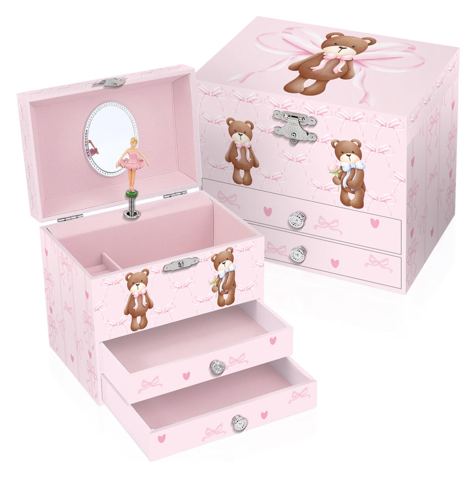 Custom Luxury Girls' Ballerina Music Box New Wooden Drawer Jewelry Case Display with Rotating Music for Kids Set
