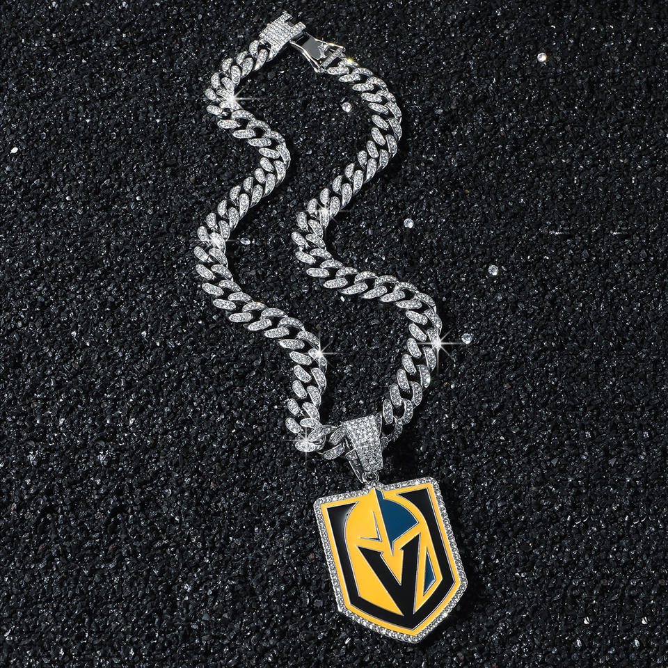 Ciondolo da torneo di lacrosse in cristallo con catena di lusso personalizzato per uomini Vegas cavalieri d'oro placcati in argento e oro