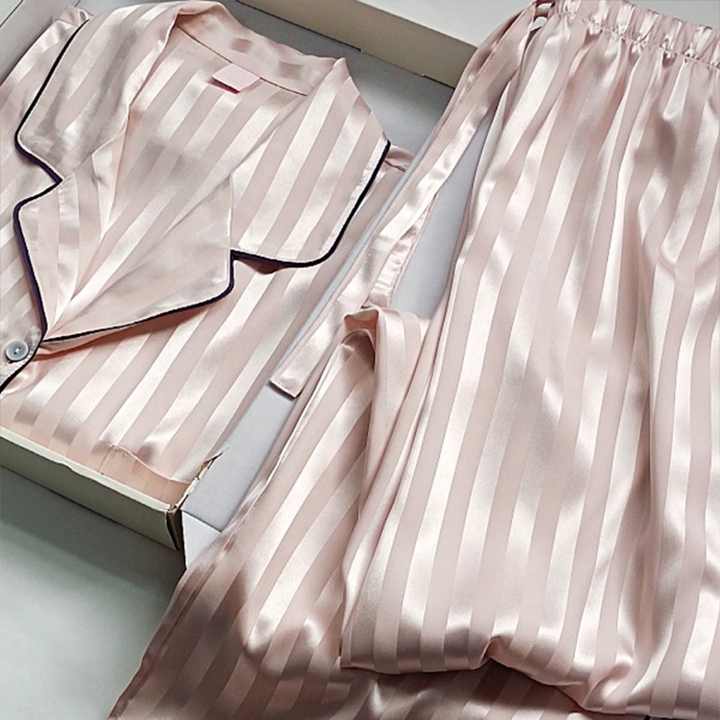Set di Pigiama in Raso di Lusso Personalizzati Pigiama da Donna Comodo per Casa Pigiama in Seta a Strisce Bianche Abbigliamento da Notte per Donne