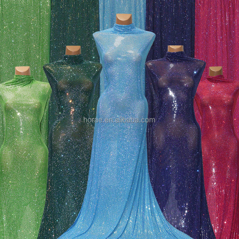 Custom Luxury Stretch 1mm Spacing 3D Rhinestone Crystal Beaded Stoned Sheer Tulle Mesh Dress Fabric