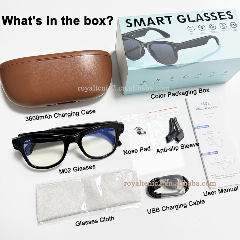 Occhiali da Sole Smart Personalizzati M02 Ultra AI con Fotocamera da 8MP, Supporto Registrazione Foto, Audio, Video e Traduttore, con Powerbank di Ricarica