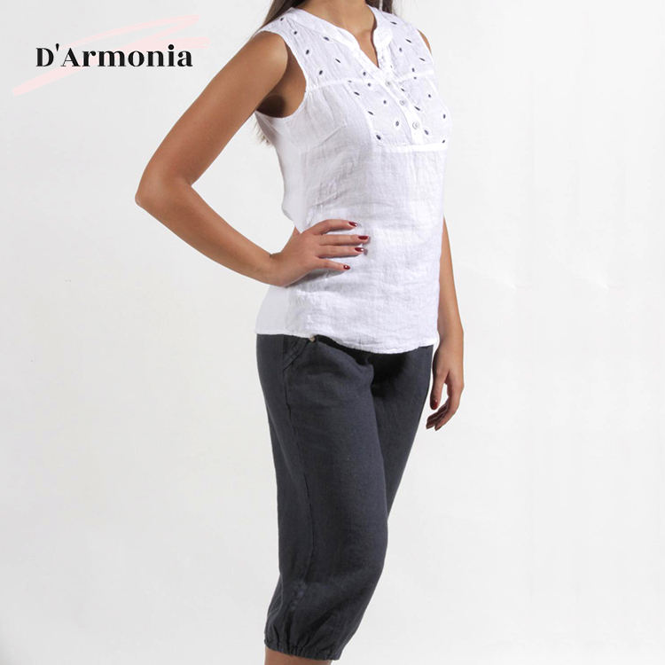 Camicie casual senza maniche ecologiche Camicette da donna in lino