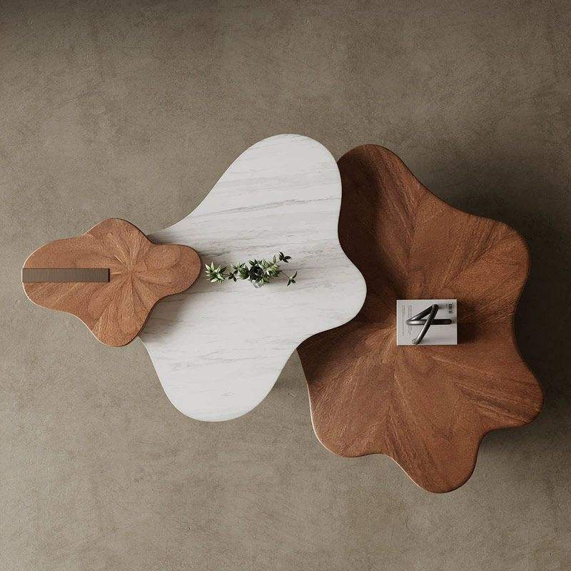 Tavolino da Tè Italiano su Misura dal Design Creativo, Impiallacciatura in Noce, Forma a Foglia di Loto, per Soggiorno Moderno e Semplice