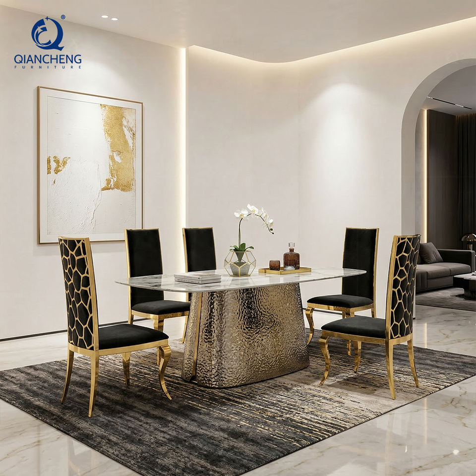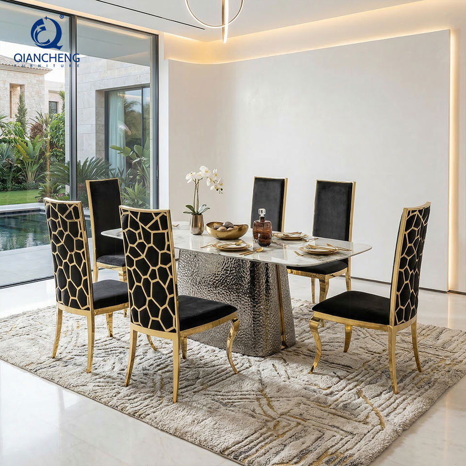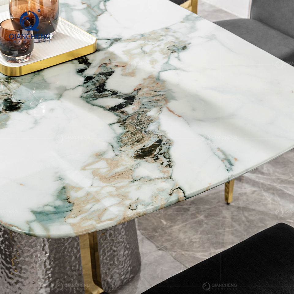 Custom Made Hand Craft Stainless Steel Dining Table for 10 People Turkish Furniture Dubai Artificial Marble Top Dining Table