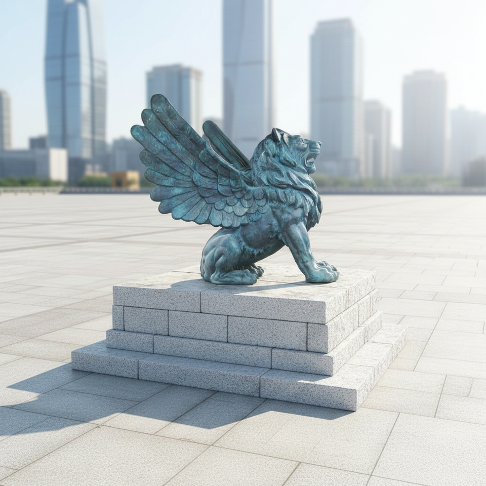 Statua di Leone Alato in Bronzo Decorativa per Giardino Esterno su Misura