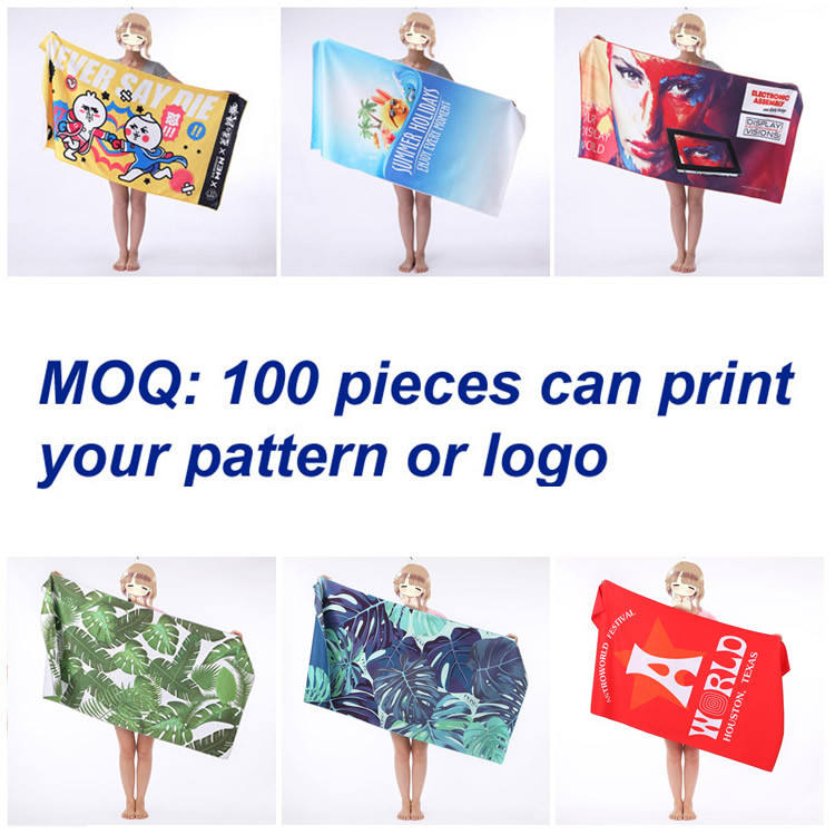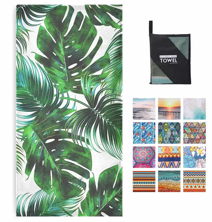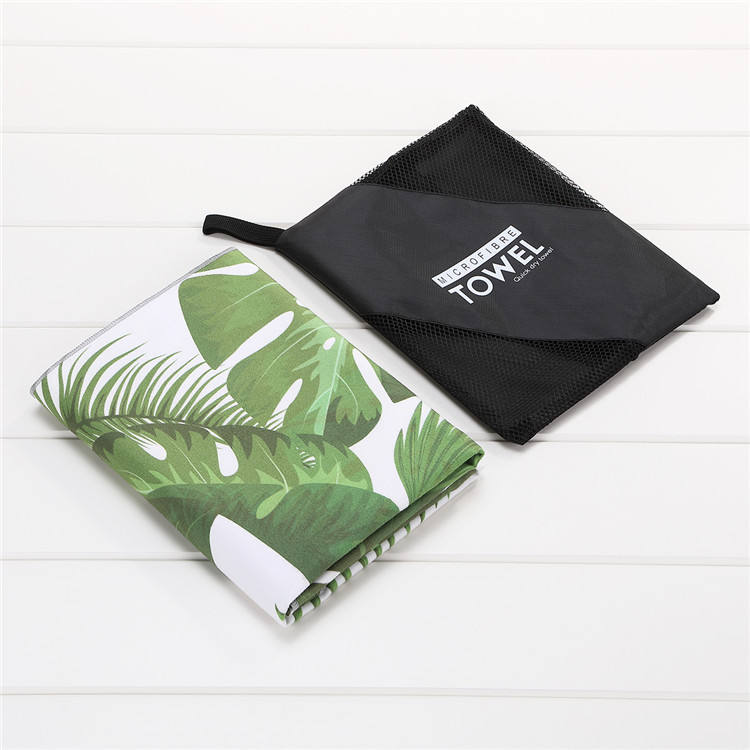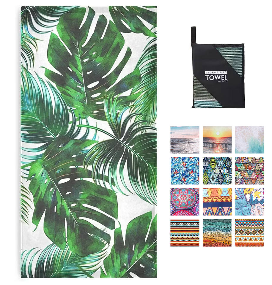 Asciugamani da Spiaggia in Microfibra con Logo Personalizzato, Etichetta Privata, Stampa Digitale, Design a Foglia Verde Sublimato