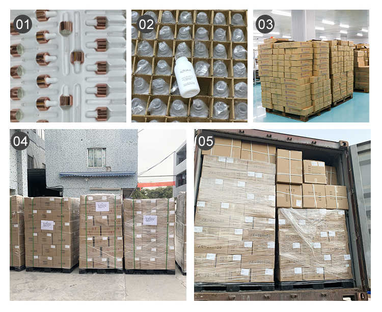 Usually packed with paper divider with Foam/PE bags/black glass jar with wood lid