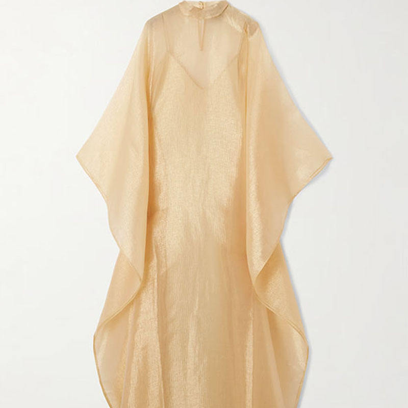 Abito Lungo da Donna Estivo Traspirante su Misura in Organza Plissettata Metallizzata con Colletto Rialzato Casual